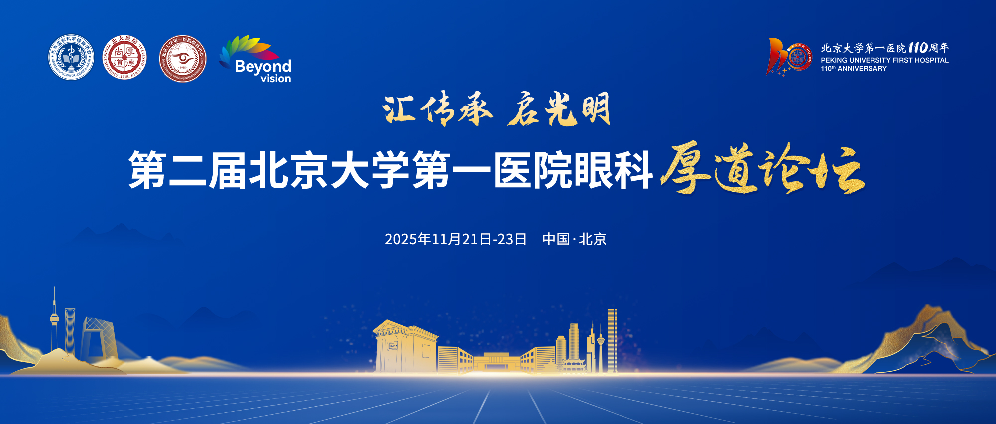 2025年11月21日-23日,由北京医学科学健康学会、北京大学第一医院主办,南京医科大学第一附属医院协办的“汇传承 启光明”第二届北京大学第一医院眼科厚道论坛将于在北京成功举办。本次大会以 “汇传承 启光明” 为主题,聚焦眼科临床高质量发展,邀请了多位院士、眼科专家、学者,围绕眼科常见多发疾病,以主旨演讲、专题讲座、经验交流、病例分享等形式展开深入研讨和广泛交流。